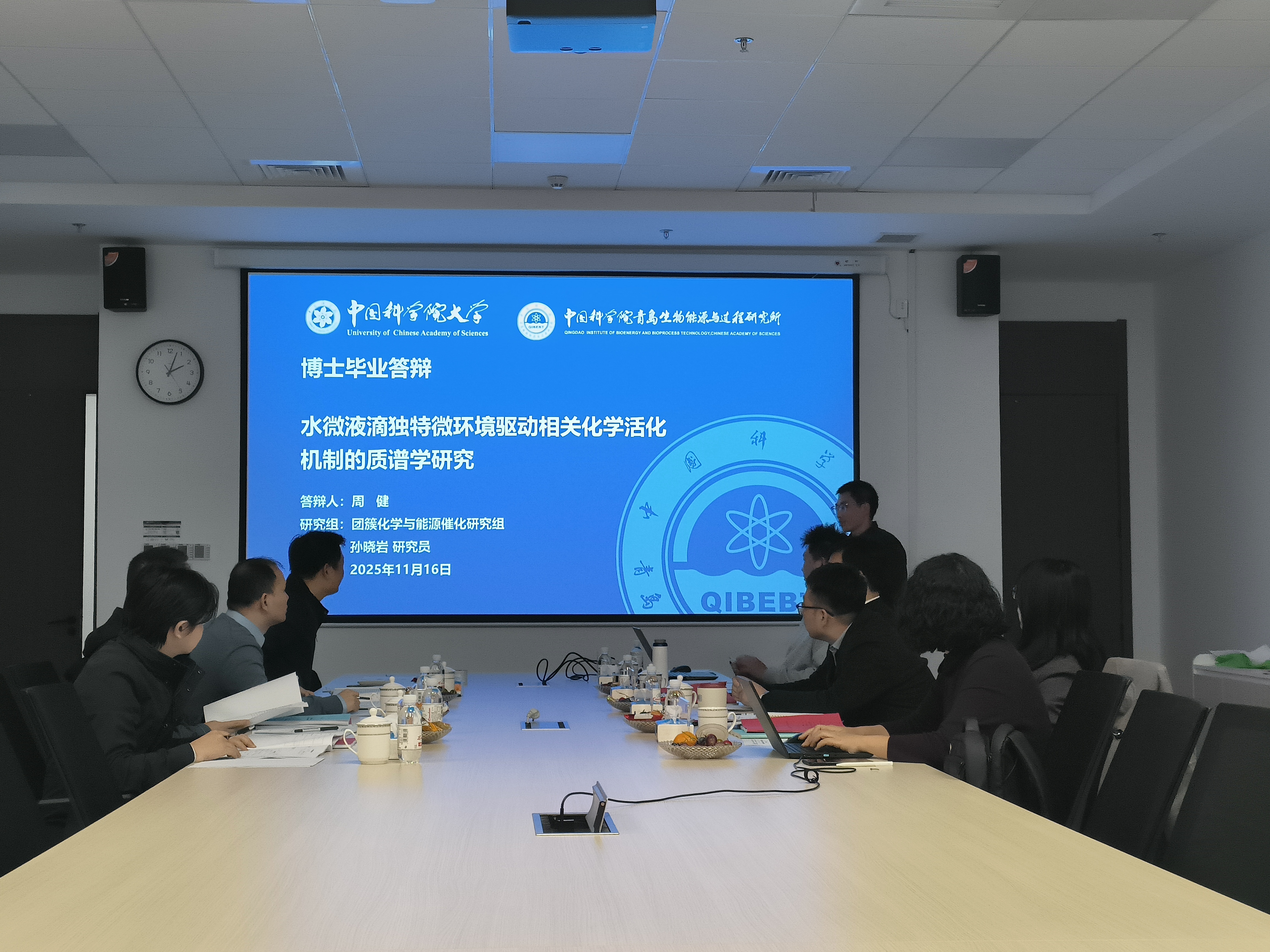 2025年11月16日,团簇化学与能源催化研究组2025年度学位论文答辩会于L2 209会议室举行。华中科技大学夏宝玉教授担任答辩委员会主席,山东大学(青岛校区)胡新明教授、以及中国科学院青岛能源所江河清研究员、陶闻杰研究员、高军研究员、朱佳伟研究员担任答辩委员会委员。