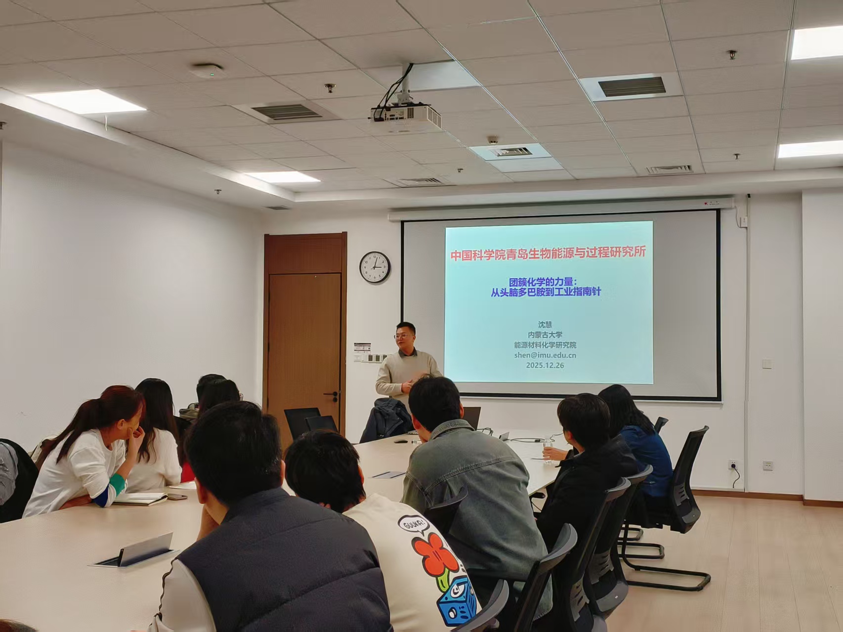 内蒙古大学沈慧教授受邀于2025年12月26日来组访问交流,并作了题为“团簇化学的力量:从头脑多巴胺到工业指南针”的报告。